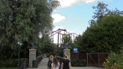 We besluiten de linker kant van het park eerst te doen en het achtbaangeweld rechts te laten.