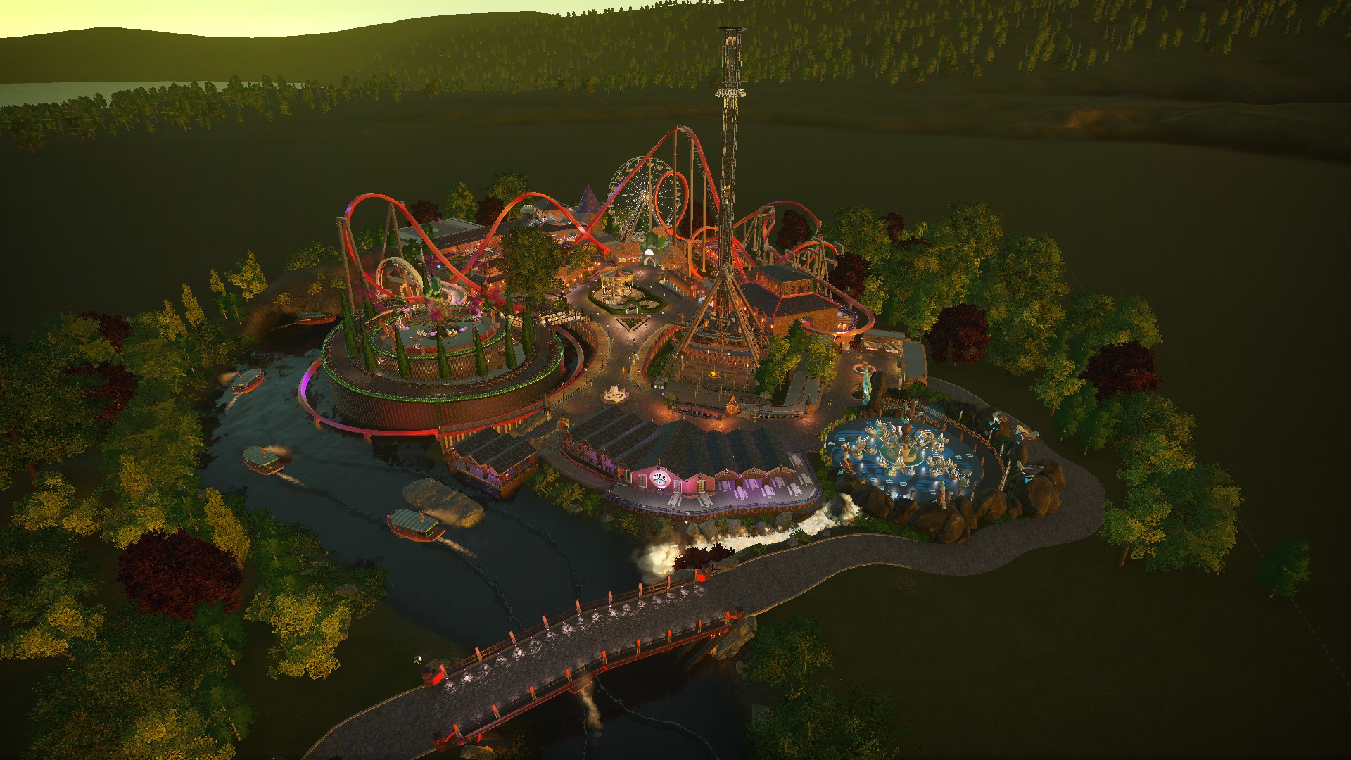 Mijn inzending bezondigt zich daardoor aan DLC-gebruik en beroerd gevormde coasteronderdelen. Desalniettemin hoop ik dat het er toch leuk uitziet. Neem maar vooral dat achterste parkgedeelte mee in de beoordeling. :p