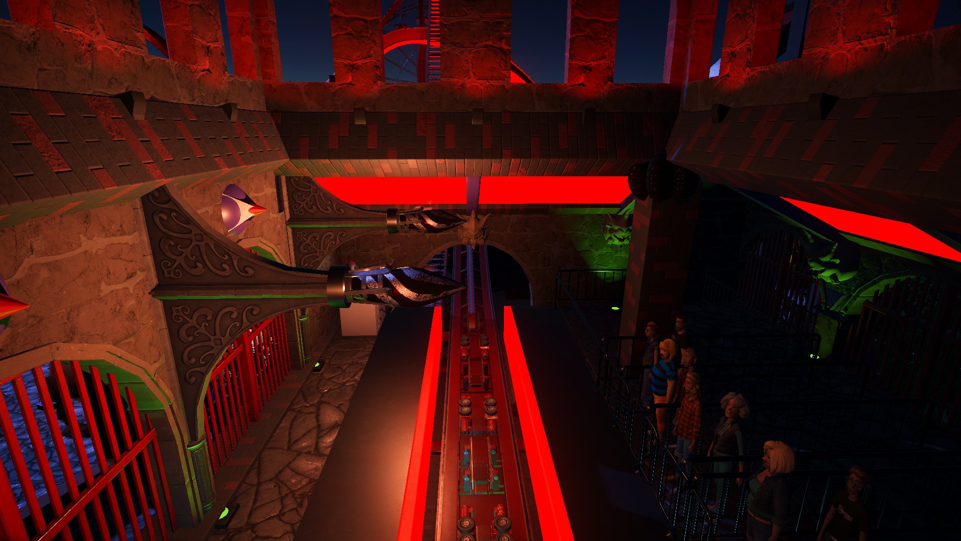 Nadat de achtbaan zelf klaar was, kon ik beginnen aan de stations en andere gebouwen. De meeste tijd kroop echter in het thematiseren met bomen, planten en rotsen. De laatste stappen waren de verlichting, het hekwerk rond de paden, voorzieningen voor de bezoekers en het personeel.