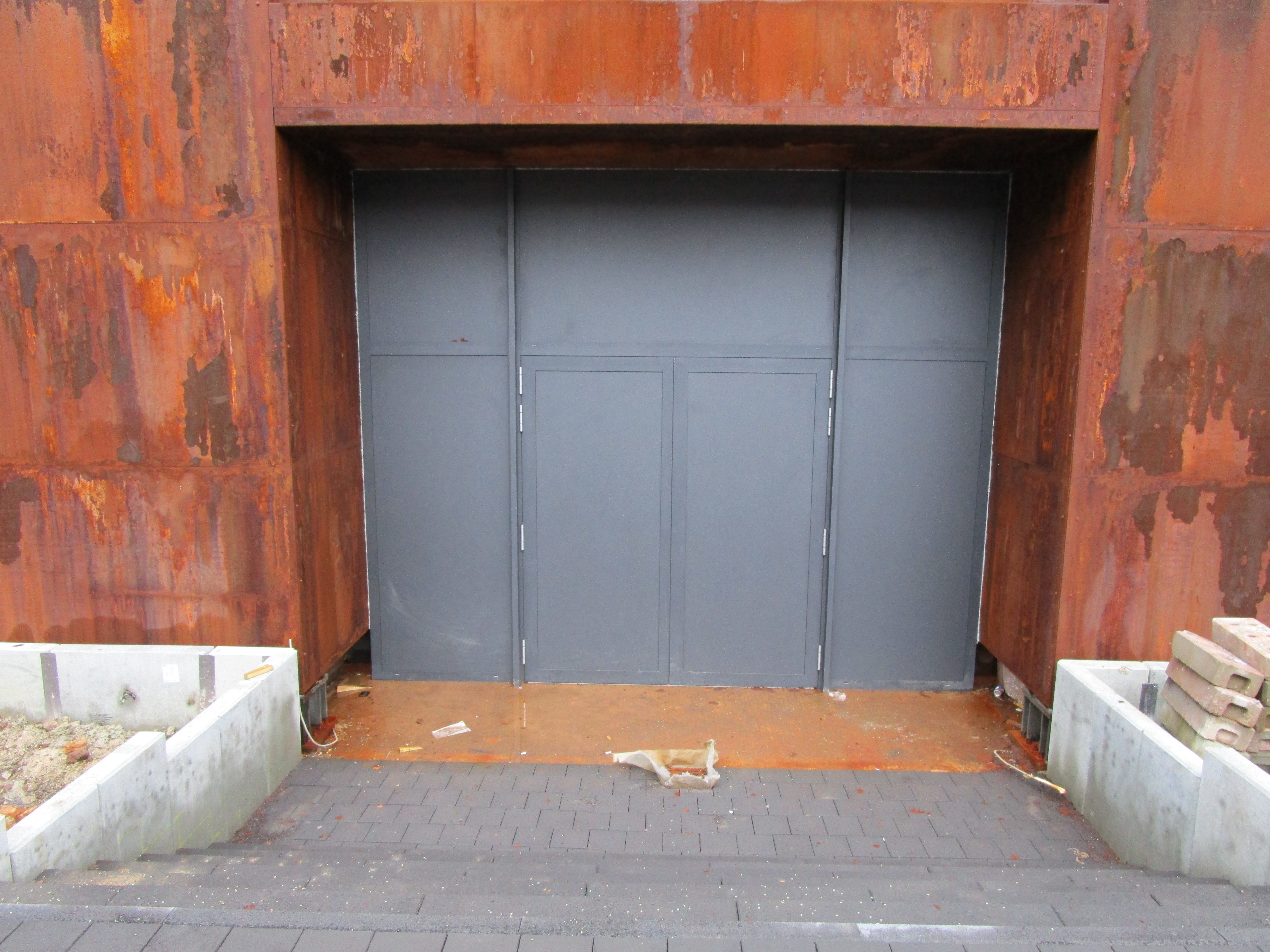 En het gat in de roestwand is nu opgevuld met een no-nonsense dubbele deur: