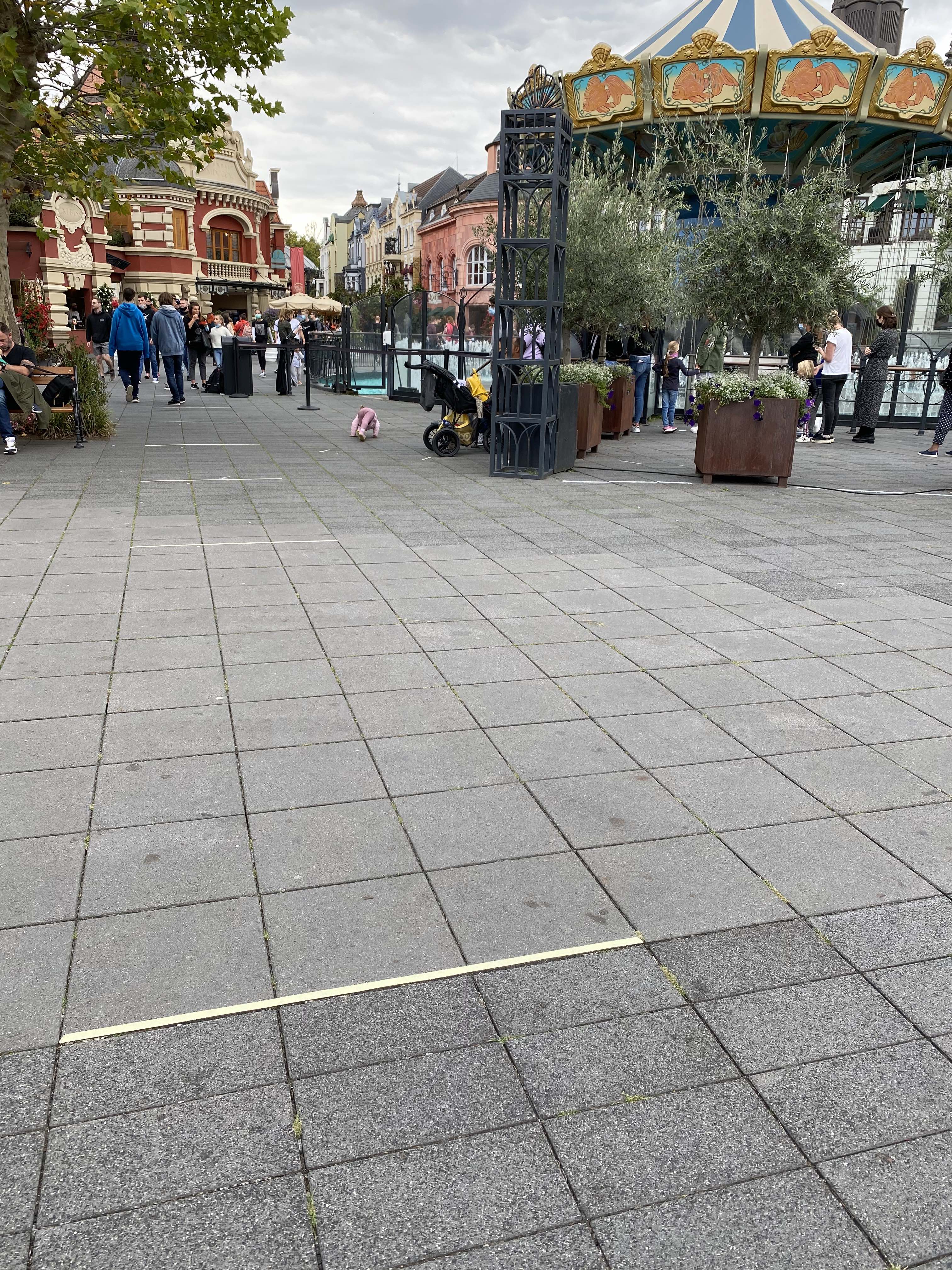 Vandaag werd er schilderstape op de grond aangebracht van aan de ingang van Rookburgh in Berlijn tot achter de zweefmolen met extra S-bochten op de Kaiserplatz.