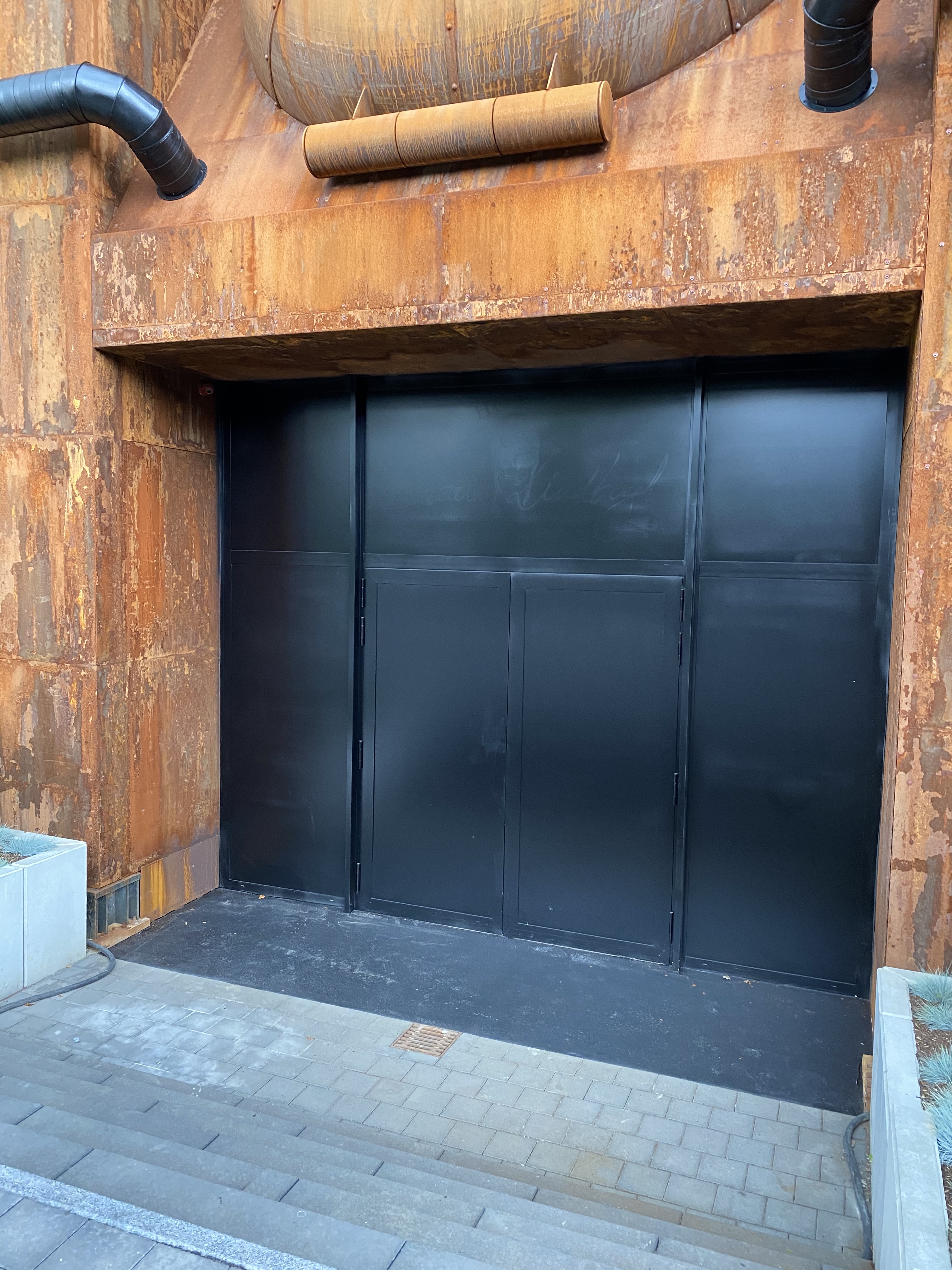 De deur werd zwart overschilderd (je kan het reliëf van de sticker met het logo er nog door zien):